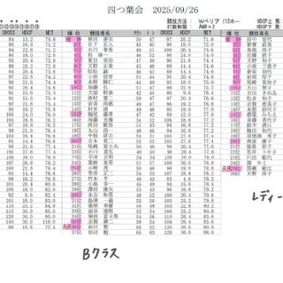 四つ葉会成績表 2025/09/26